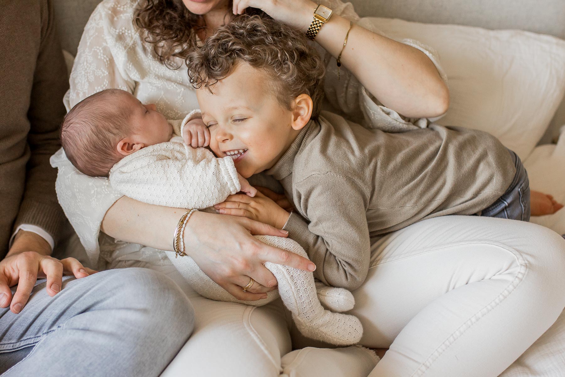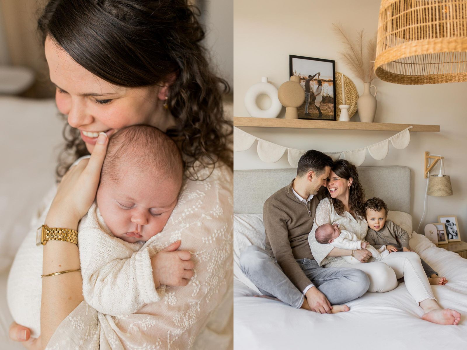 Grote broer was zo lief voor zijn kleine zusje. Er werden dan ook heel veel kusjes en knuffel uitgedeeld. In 2020 mocht ik de bruiloft van Vincent en Sanneke vastleggen en ik vind het dan altijd speciaal als mijn bruidsparen een gezin worden en ik dit mag vastleggen. De tijd nadat je baby geboren is, is zo speciaal. Dit wil je nooit meer vergeten en voor altijd in je hart bewaren. En in foto’s natuurlijk. Genieten jullie mee van deze cosy newbornfoto’s?