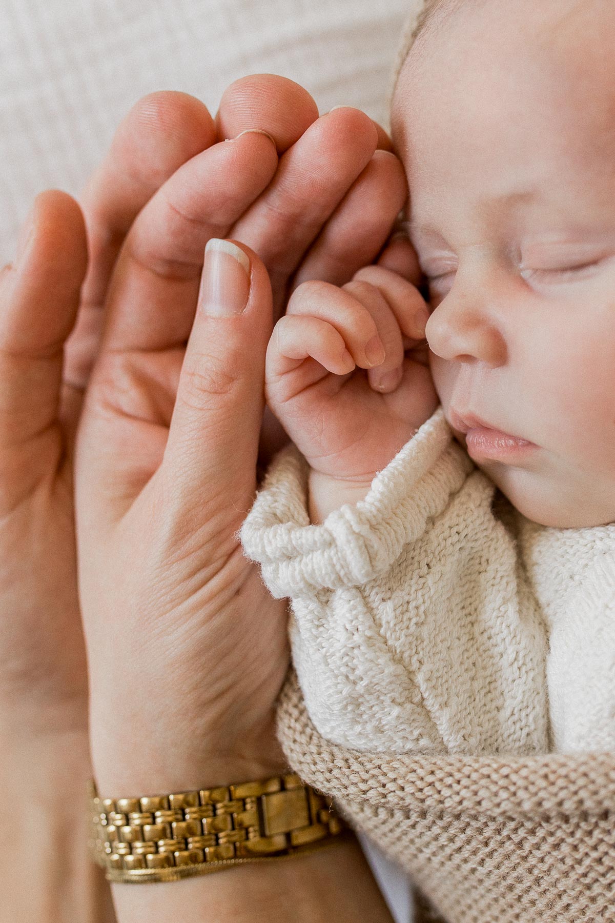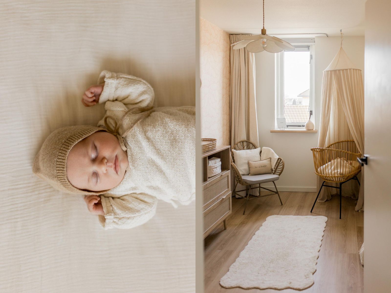 Warme newbornshoot in Utrecht, in naturel en beige tinten