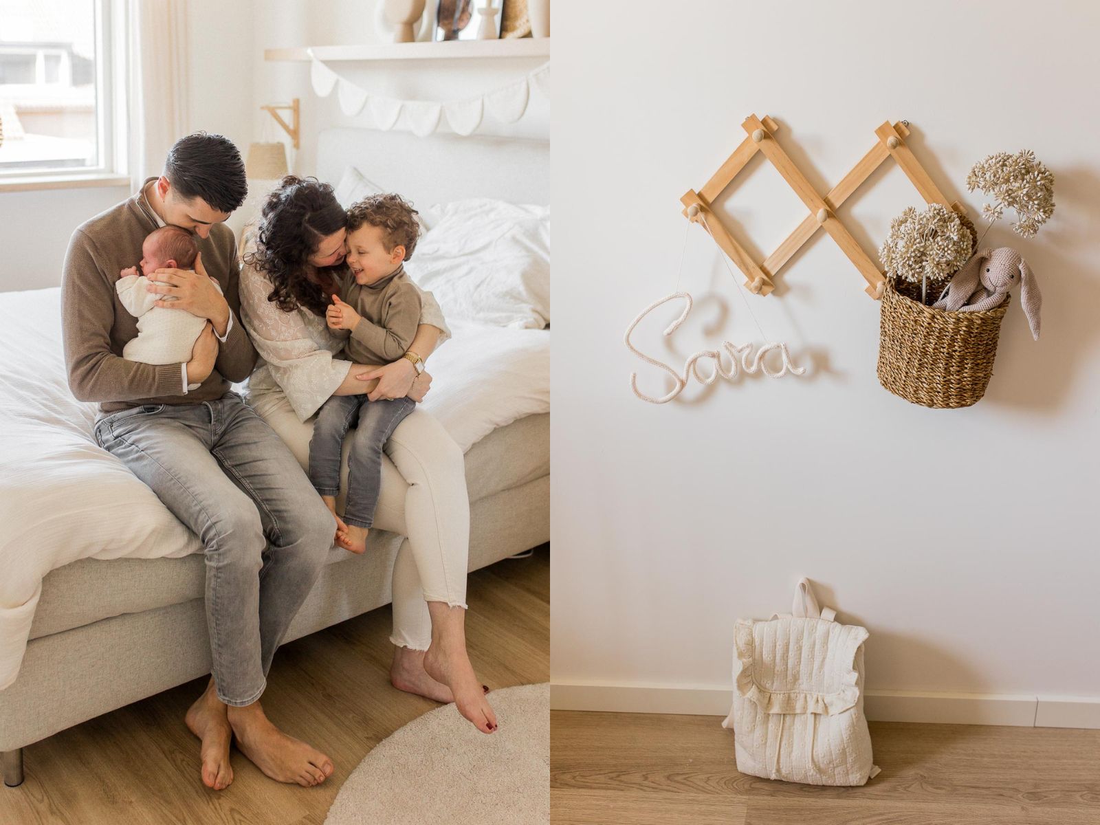 Tijdens deze newbornshoot in prachtige warme kleuren legde ik baby Sara vast in het mooie huis van Vincent en Sanneke, in Utrecht. Ik hou ontzettend van deze natuurlijke en tijdloze stijl in interieur en het is dan ook een prachtige achtergrond voor newbornfotografie. De zachte tinten en rustige sfeer zorgen ervoor dat de kleine details, zoals de schattige handjes en voetjes van Sara, helemaal tot hun recht komen. En over babykamer inspiratie gesproken, check zeker even de foto’s van de mooie babykamer van Sara! Haar mama heeft zeker oog voor styling, kleur en detail.